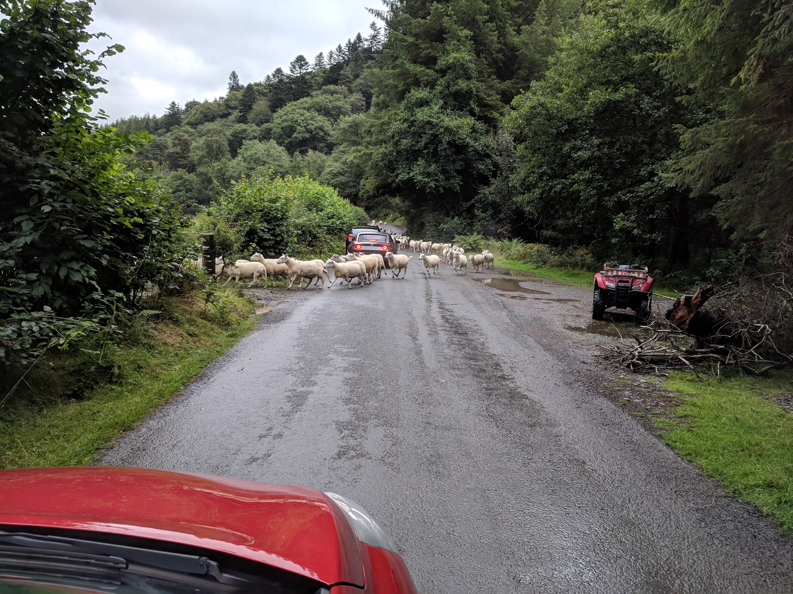 The afternoon consisted of a push down the west coast, before cutting inland past Tregaron towards our stop for the night. Tight single track intersected by some more open B-Road stretches made for good driving, with traffic definitely present but not as bad as expected. The jewel in the crown of the afternoon was undoubtedly a section of pristine back road just south of Pontrhydfendigaid, which shared more similarities with a roller coaster than a road. Near vertical crests with sweeping troughs, switchbacks so tight you thought you'd have to take a second swing at them, and sheer drops on the side that made you reconsider your throttle position like nothing else on the trip.